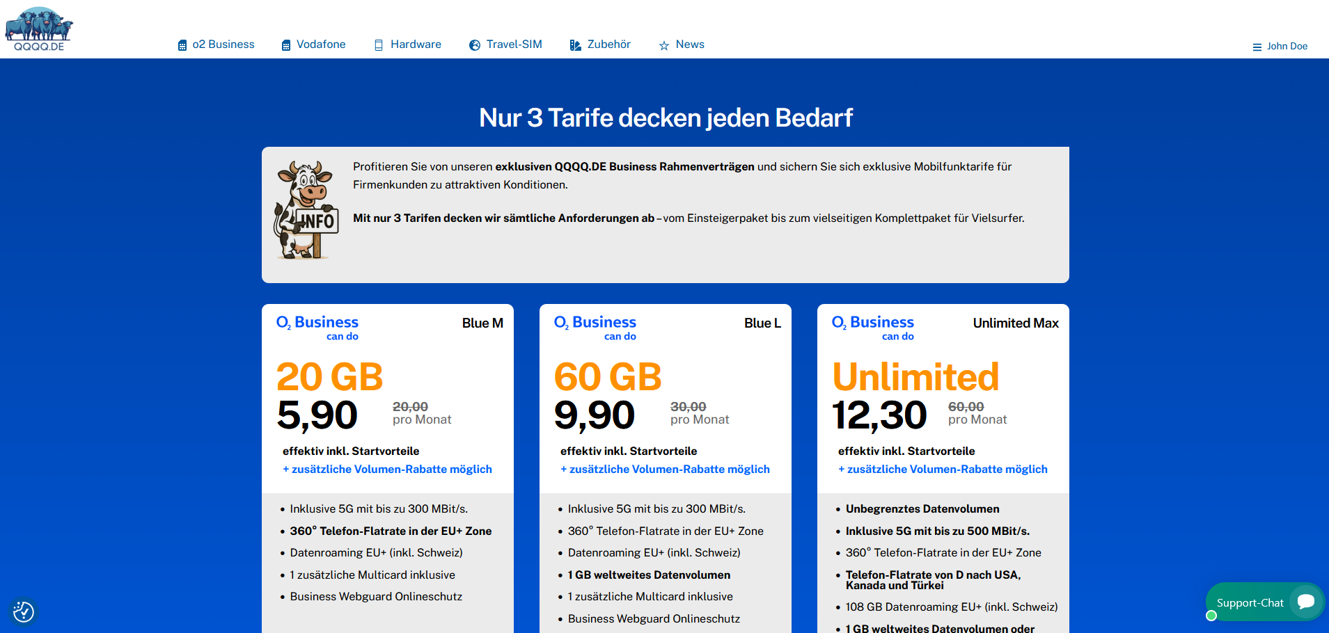 Erleben Sie, was es heißt, wenn schwäbische Gründlichkeit auf die besten Mobilfunk-Deals trifft. Lernen Sie uns kennen und werden Sie Teil unserer exklusiven QQQQ.DE-Welt – wir freuen uns auf Sie!